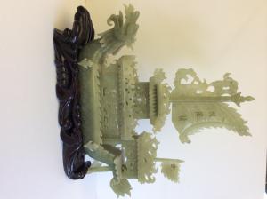 Description: Antique Chinese Sculpture of Dragon Boat hand carved from natural Jade on the wooden base. Huge. Measures: 12" wide and 14.5" tall. Intricate and beautiful carving. Heirloom pièce.Excellent condition