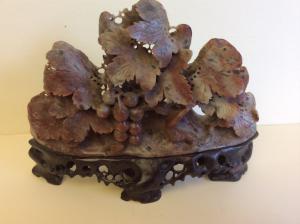 Antique Chinese Hand Carved Sculpture of Grape Tree,Soapstone on stand
