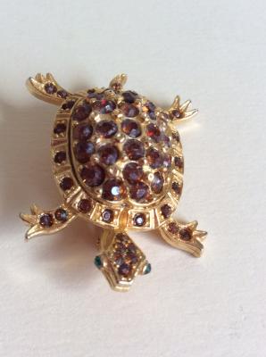 Vintage Gold Plated Turtle Brooch decorated with Topaz Rhinestones,marked De Nicola