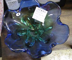 Description: This is likely a Murano Bowl from Italy but I cannot guarantee that since there isn't a tag or signature. It is beautiful with deep blues and lighter blue and green.
