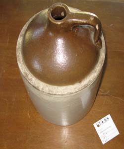 This is an old stoneware piece that isn’t perfect – there are a few small chips but given its age, the condition is good. No marks that I could find. Est. about a gallon.