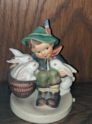 Description: Hummel figurine #58 titled "Playmates". Approx 3" High, TMK 3 with a Bee. Located in Case # 4 on the front aisle.