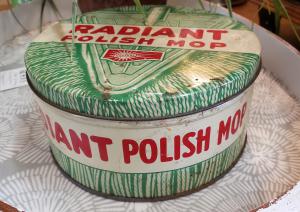 Description: Hard to find tin that use too house a mop head. Great graphics & color.