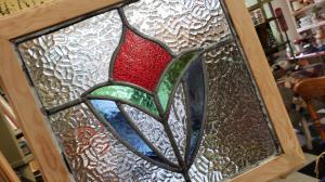 This beautiful floral design window I imported from England. Original glass, no cracks & hand-made back in 1930's. Came out of a small century old cottage, south of London, near Stonehenge. Competitively priced & the old windows are slowly disappearing. Happy hunting.