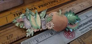 Description: Sweet Autumn clip from France, marked. 🎃🍁 Pluther of Fall goodness, in good shape. Wear me or work into art?