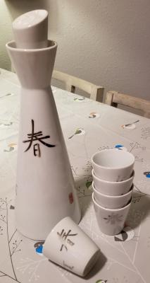 Description: Sweet set with its orginal stopper & label/markings. Use me! "7" pcs. Older vintage.