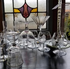 windows & antique stemware of all shapes & sizes.