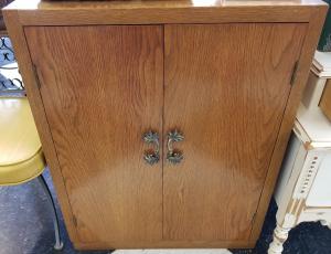 THIS ITEM HAS BEEN MARKED AS SOLD Description: Cabinet w/ double doors w/ 2 drawers inside. Marked by maker on the back. "One of a kind". Closes nicely. I restored the 2 front doors as there were streaks on the fronts. Sweet hardware. 2 drawers inside add extra storage.