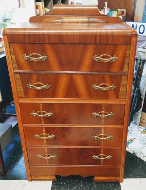 THIS ITEM HAS BEEN MARKED AS SOLD Description: Quality "oversized" highboy dresser from 1930's, art deco era. Rare.