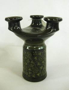 Description: Stands on three legs to hold a large candle, and reverses to one leg to hold three.