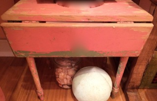 At Stars Too a sweet smaller scale drop leaf table in blush pink; weathered with age and use.