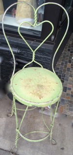 The classic ice cream parlor chair in a weathered and worn soft green can be found at Stars Too.