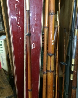 Dealer #27 fills an old barrel with ski poles, skis, and fishing poles. An eclectic gift for the cabin owner, sports aficionado, and outdoorsman.