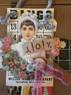 Vintage remnants and Bingo cards make for one-of-a-kind ornaments and package toppers. Available from Stars Too.