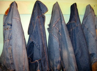 Stars Too shows off a number of denim coats and jackets on a simple pegged wall mount.