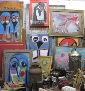 Dealer #1 just brought in two truckloads of new paintings and good rusted "stuff" to fill two booth spaces for the sale starting Friday. Come early as the paintings fly out of the doors!