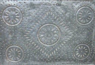 Detail of punched tin panels in this wonderful pie cupboard from Dealer #153.