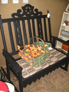 Dealer #35 has this fabulous bench/rocker and colorful bouquet for the more classic take on orange and black!
