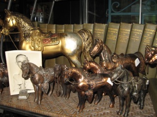 Pick your favorites from this corral of brass horses at Stars Too. Clustered together with an image of a cowboy, this collection can travel throughout the house.