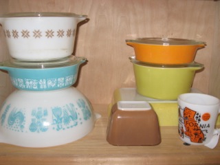 Pyrex never loses it's edge for the cook! Dealer #74 has shelves filled with sets and mismatched bowls for those collecting this popular style!