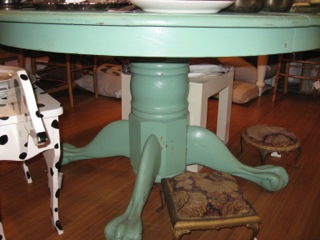 A great table with color that explodes!! Stars Too has yet another nice table, this one circular! Solid wood with center pedestal base and claw foot legs allows for a good fit for small spaces and intimate gatherings.