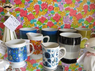 Dealer #51 has the brightest floral wallpaper which really makes the cups and saucers jump off the glass shelves. This just brings a smile to my face.