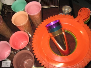What an awesome set of vintage picnic trays for this weekend's barbecue!! Complete with colorful glasses, Dealer #159 has it all.