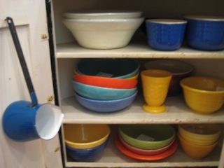 Bowls of all colors, sizes, and shapes nest together on these shelves awaiting a new home. Available from StarsToo.