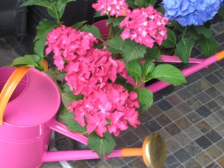 We pass by daily but color seduces the eye and leads us in. Stars Too has beautiful hydrangea mixed with cheerful watering cans in bright colors on the sidewalk. Lets venture in and see what colors catch our eye.