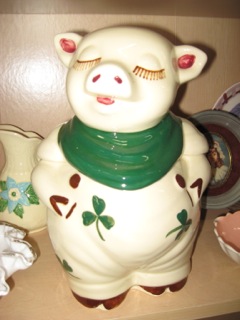 This little piggy was found nesting in the upper shelves in a dapper outfit. All dressed up and waiting to go home with you! If you can't have the real thing, this porcelain piglet will still make you happy to come through the door after a long day at work! Available from Dealer #37, the Shawnee collectible also serves for your secret stash of cookies and treats.