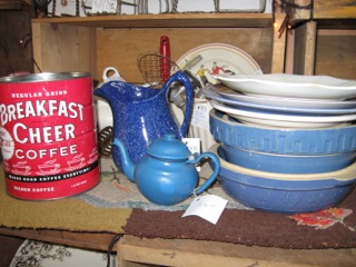 Dealer #27 has sparkling lights that draw you in to see the vintage coffee cans, plates and bowls that fill one of two spaces!! Mix and match and keep the coffee brewing!!