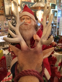Stars Too has magical creations displayed throughout their store. Santa and his reindeer fly through the air!