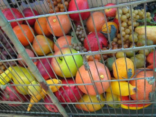 Leave it to Stars Too to find a new use for the birdcage!! Filled with a large variety of fruit this is a great centerpiece OR just grab the fruit and store it in the bowls shown next!!