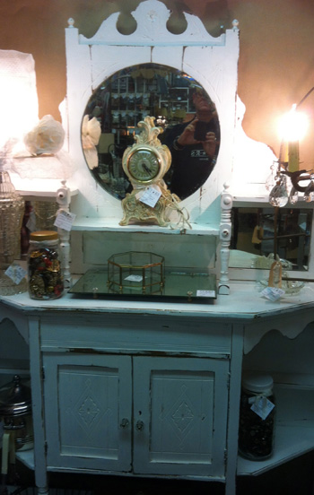 Dealer 41 has the best selection of industrial furnishings in the two stores. And her prices can not be beat. This red cart is a good example. She has it priced at $238. It would be twice that price at any other shop.
