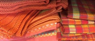 Garlands of orange and black with metallic touches fill a bold orange Fiesta bowl in the space of Dealer #74.