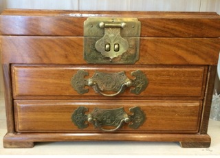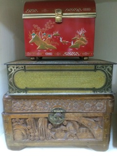 Dealer #72 has a lovely wooden jewelry box with unique hardware that could nest anywhere. Great gift idea!