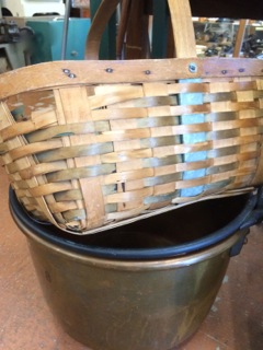 Cppper cauldron rests on the floor and a fabulous harvest basket sits on top from Dealer #46.