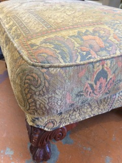 Dealer #42 has a vintage footstool/ottoman in a lovely subdued print that will blend in to many color palettes.