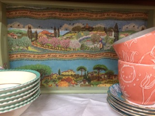 Dealer #10 serves up a colorful tray with novelty and decorative saucers and plates.