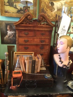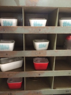 Dealer #46 shows vintage covered servers in a great compartmentalized cubby.