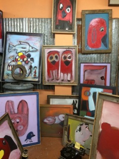 Dealer #1 has a colorful selection of new paintings filling both his spaces.