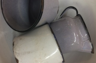 Dealer #44 has enamelware in whites and grays to make your bouquets pop. Use flower frogs to aid in arrangements.