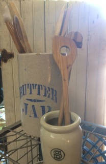 Pull the wooden spoons and utensils out of the crocks and fill with tall daisies and phlox. Available from Dealer #25.