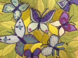 Dealer #21 catches a mass of butterflies in this crewelwork wall piece.