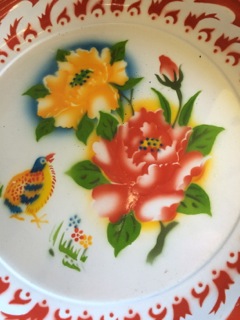 Use an enamel platter in bright hot colors for serving appetizers. Available from Dealer #116.