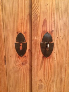 Stars Too graces the wall with a large pine cabinet and weathered patina and hardware.