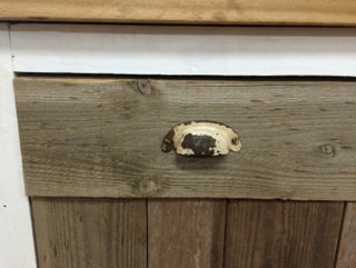 Dealer #25 repurposes cedar and crisp white paint with worn chippy pulls for a one-of-a-kind feel.