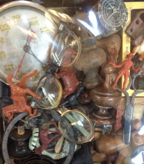 Dealer #79 has cleaned house; boxes of stuff fill the shelves and are ready for sorting and creating.