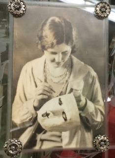 Dealer #16 has this framed vintage photo of a girl painting fine details on a mask.