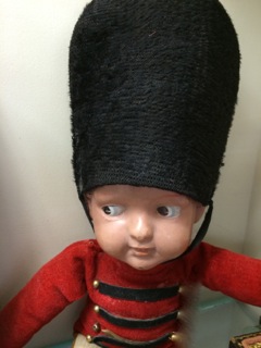 Dealer #71 shows off an adorable vintage drum major doll with a wonderful uniform and fabulous face.